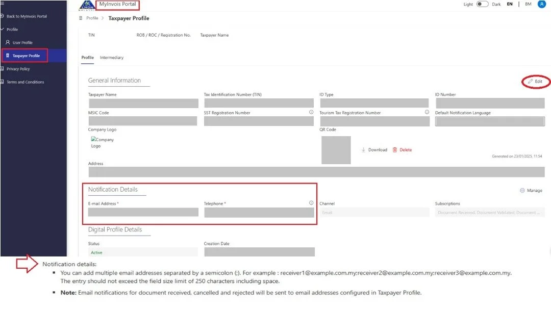 Please check and update your contact details in the MyInvois portal to ensure smooth communication: