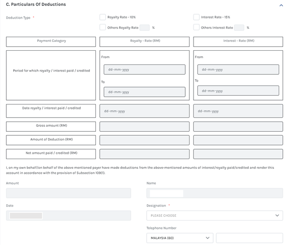 Step 6.1: Fill in the relevant information withholding tax – Royalty.