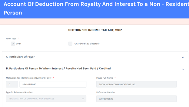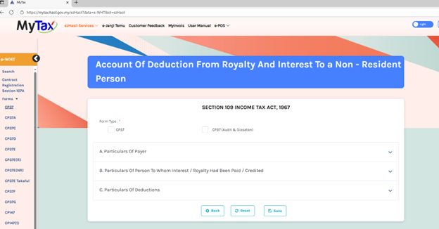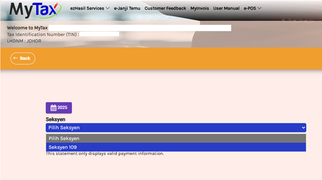 Step 2: Please select “Seksyen 109” to view the payment status of the withholding tax.